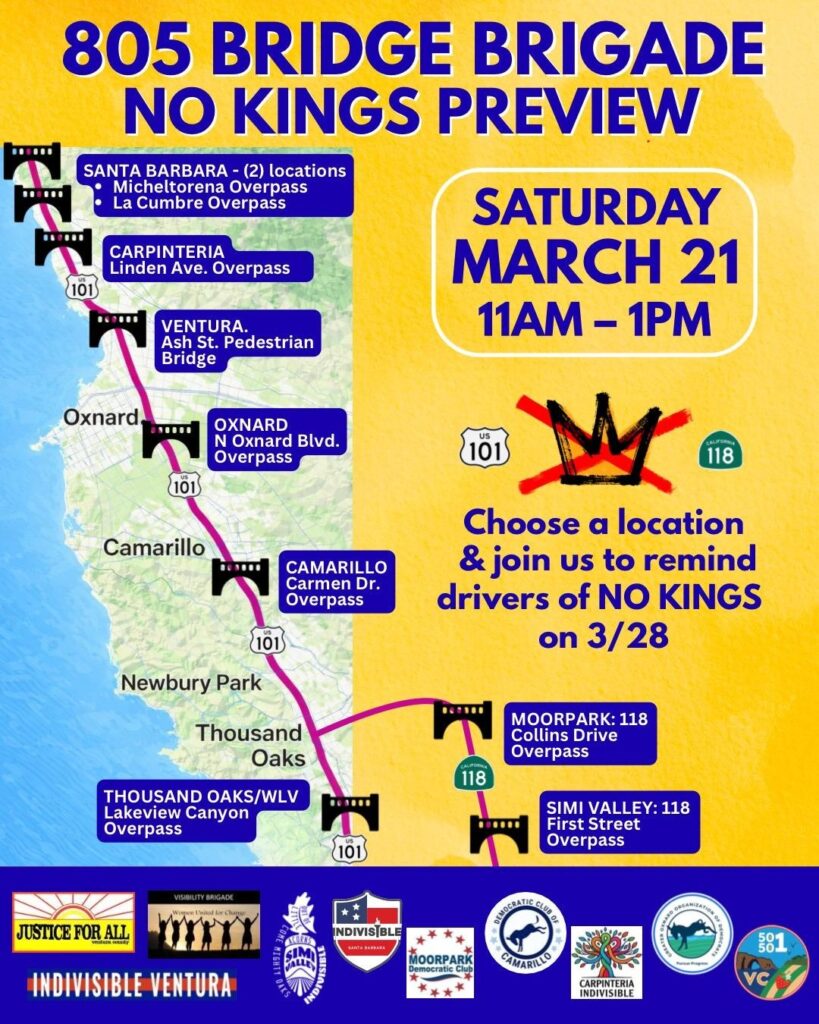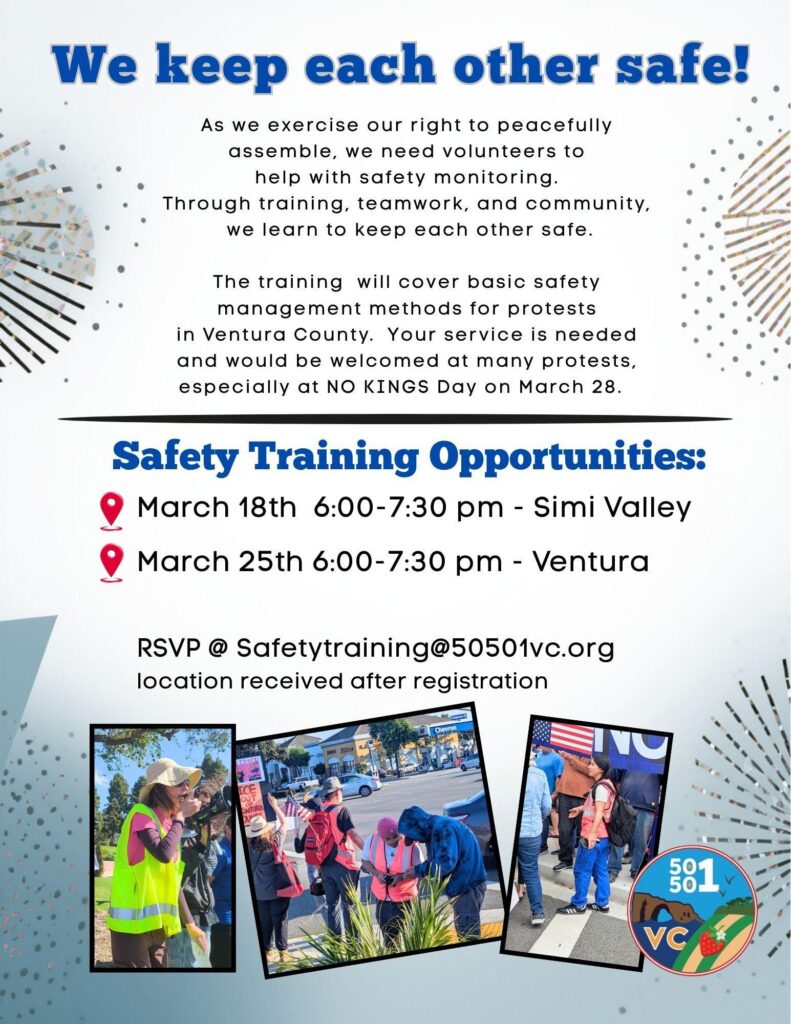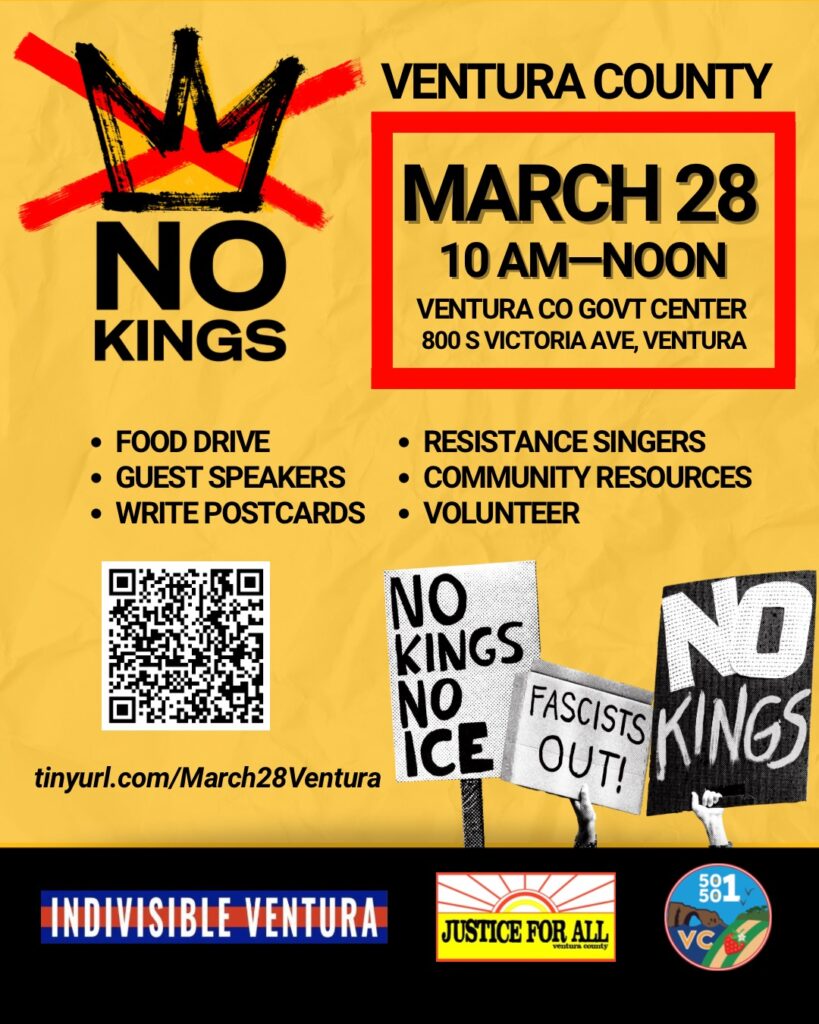50501 Ventura County is a local, grassroots, non-partisan organization committed to non-violent resistance against the authoritarian threats to American democracy. Powered by volunteers who are everyday people, 50501 VC champions peaceful protest and mutual aid for those affected by governmental overreach. We believe in democracy. Follow 50501 Ventura County on Facebook, Instagram and Reddit.
